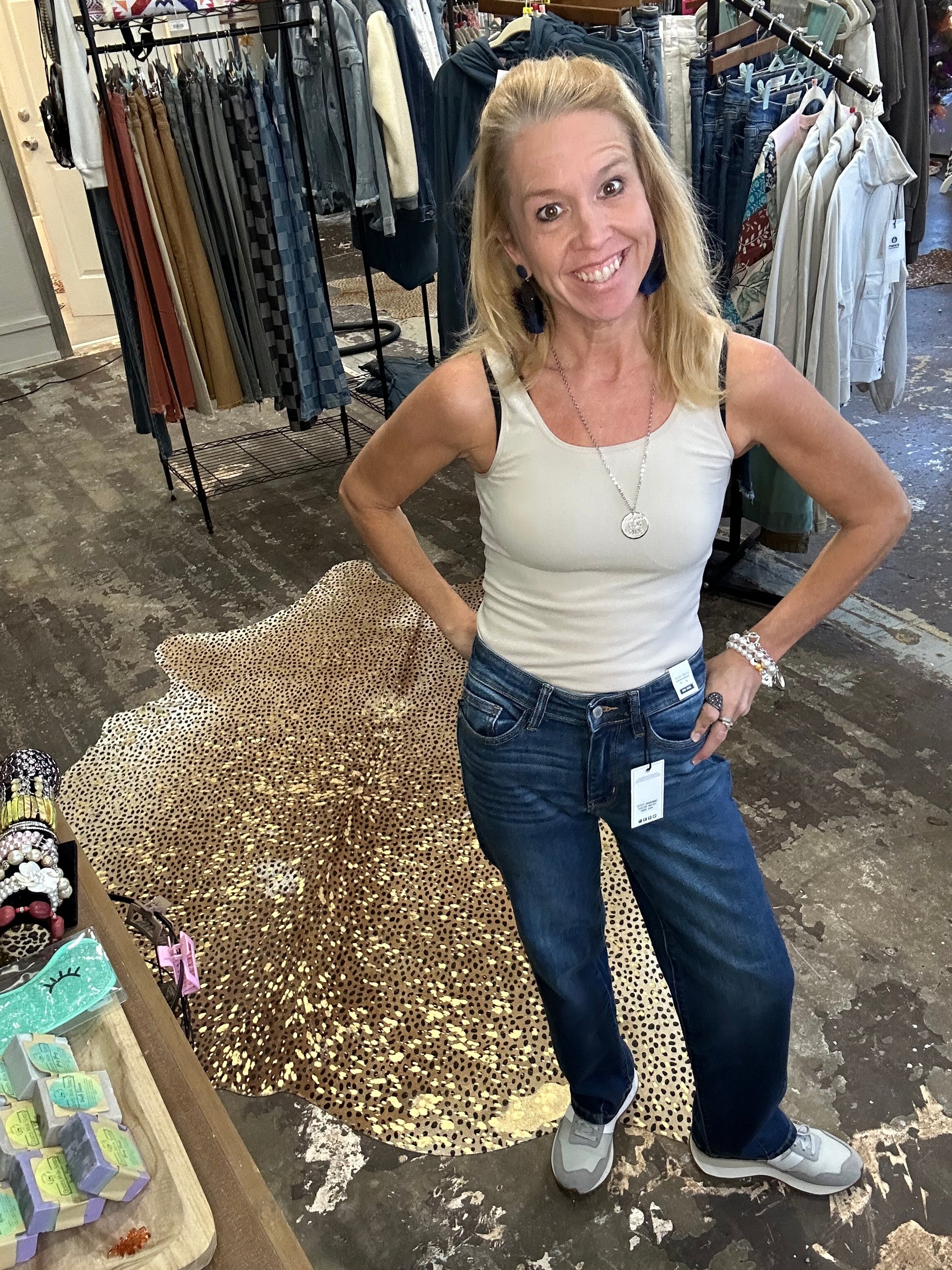 Upgrade your denim game with the JB Mid Rise Straight Fit by Judy Blue. Made with stretch fabric, these jeans offer a dreamy 90s fit that holds its form all day. Enjoy the perfect combination of style and comfort with its mid rise and straight leg design. Experience the confidence of looking and feeling your best in these dark denim jeans.