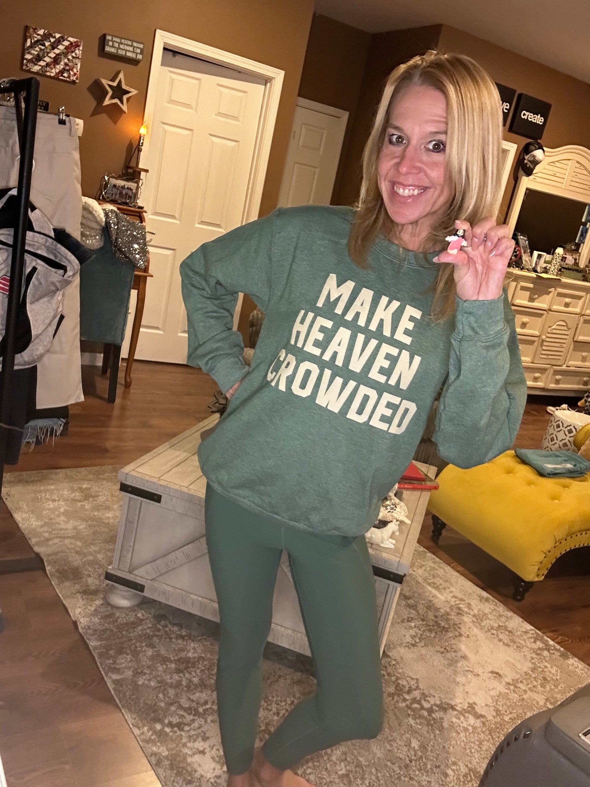 "Get ready to make a statement with Make Heaven Crowded! This Gilden sweatshirt is heavy weight for ultimate softness and features a durable screen print. Perfect for those who want to stand out without sacrificing comfort. (Beware of increased hugs and compliments.)"