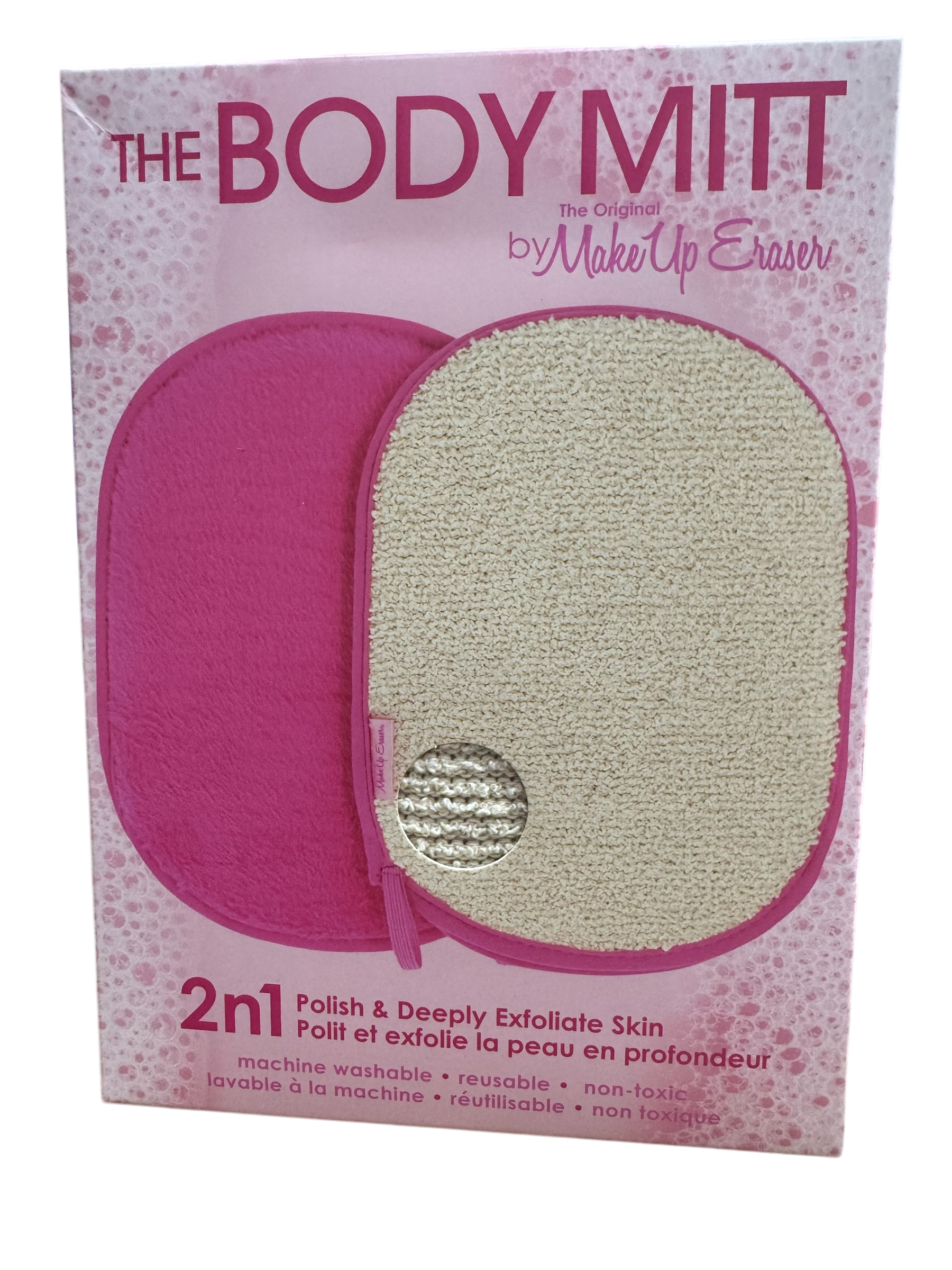 Introducing The Body Mitt by Make Up Eraser! This 2 in 1 product polishes and exfoliates skin, leaving it clean and smooth. It's also machine washable and reusable, making it environmentally friendly. Plus, it's non-toxic for a safe and healthy skincare routine. Upgrade your skincare game with The Body Mitt!
